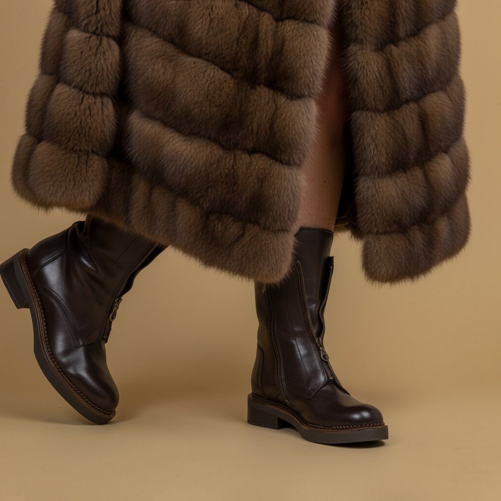 Morbidissima nappa color cioccolato per questo anfibio con doppia cerniera. Comodo? No. DI PIU' !