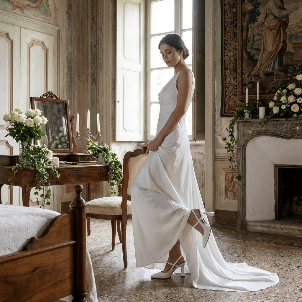 Ogni abito ha la sua scarpa ideale! Ti aiutiamo a trovare il modello perfetto in base allo stile dell’abito, alla location e alla personalità.