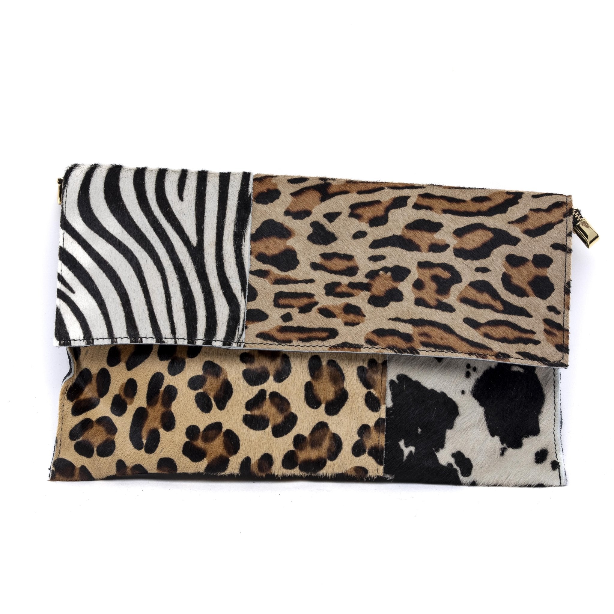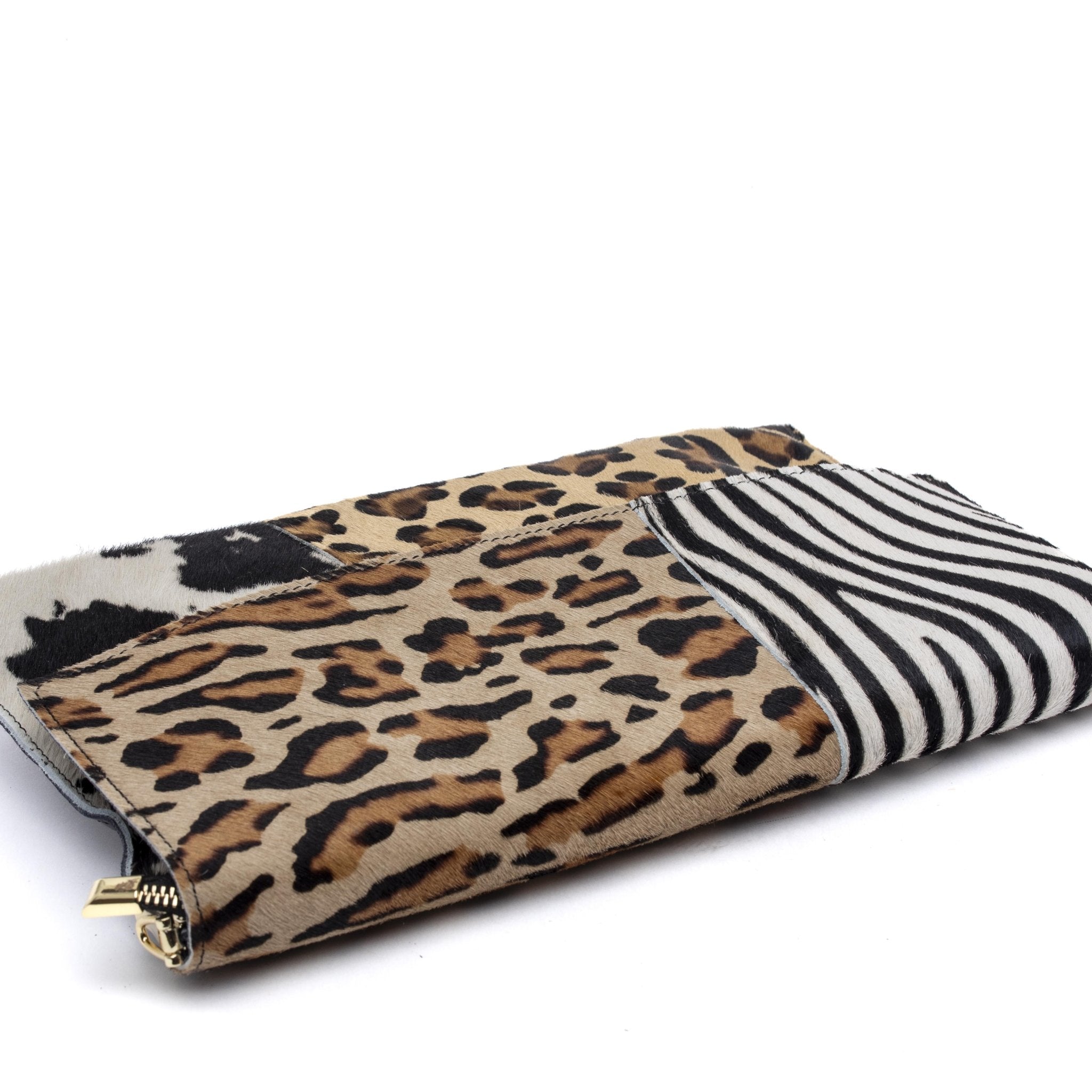 Da ritagli di pelle di cavallino i maestri artigiani fiorentino hanno ricavato un capolavoro di borsa. Utilizzando cavallino con stampe maculate zebrate e muccate cucite quasi a caso il risultato è una borsa mai uguale a se stessa, Non ne esistono infatti due pezzi uguali. Chiusura con cerniera e tracolla lunga in dotazione.
