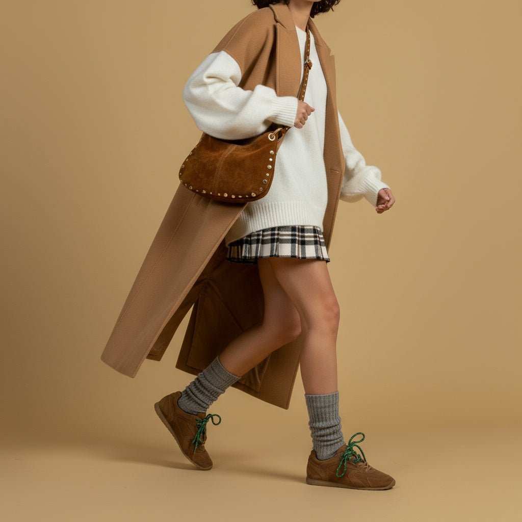 • Tomaia con forma a punta in camoscio cuoio.