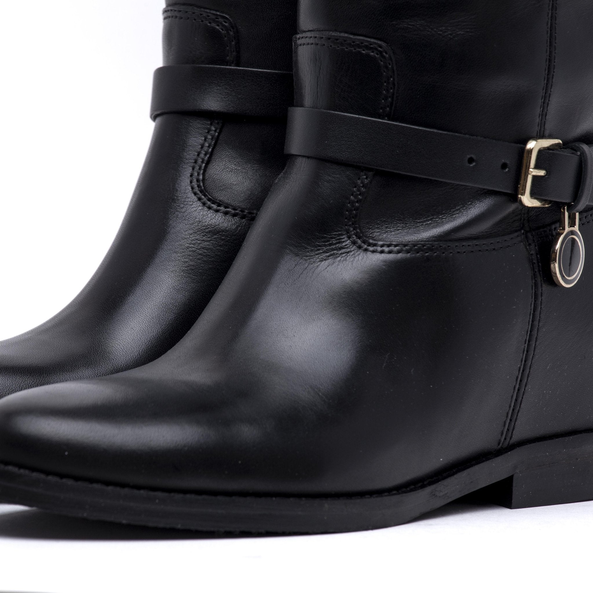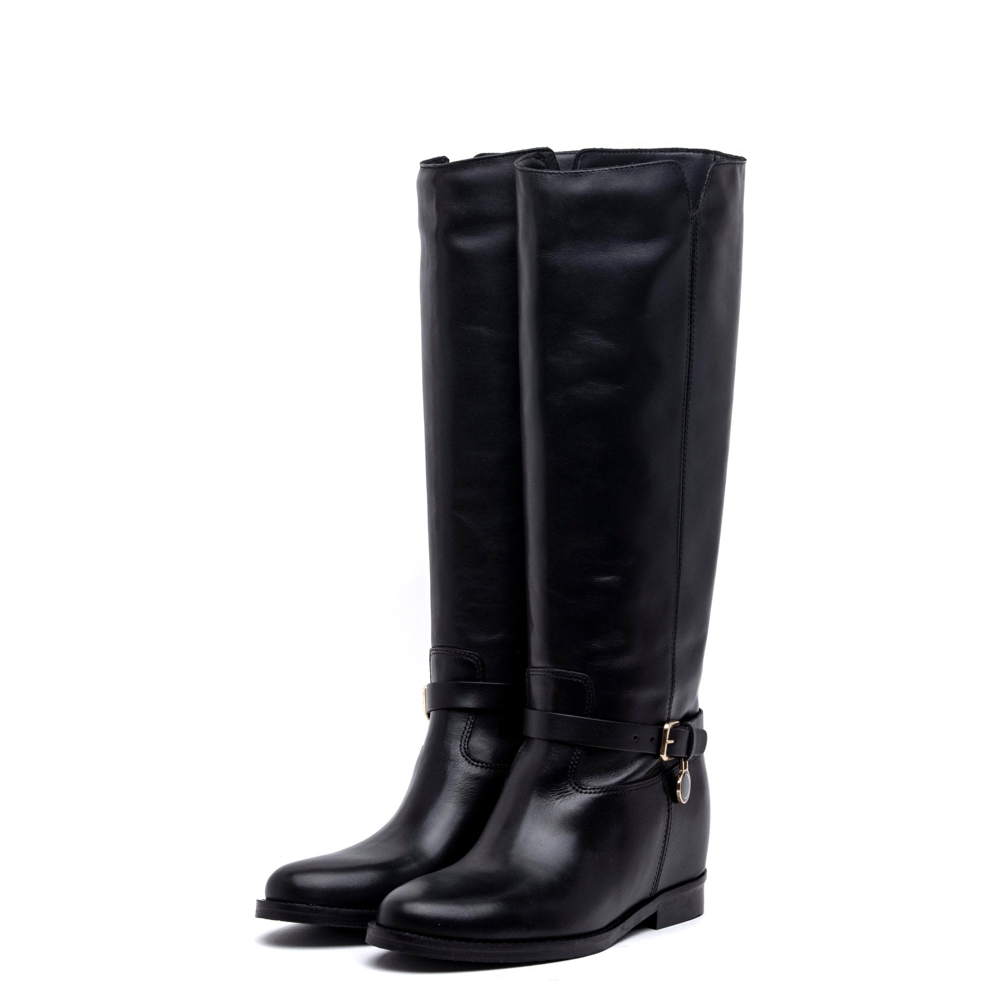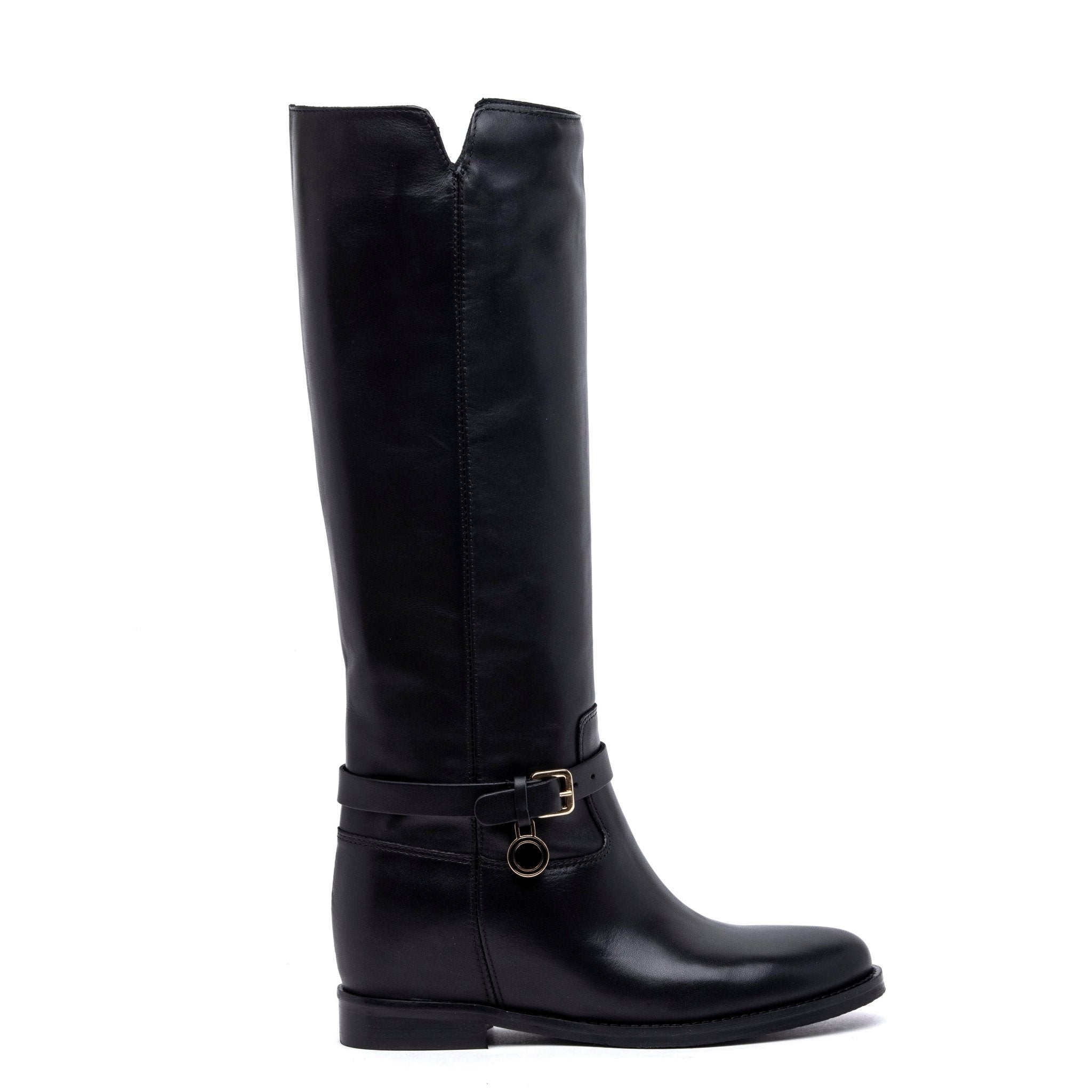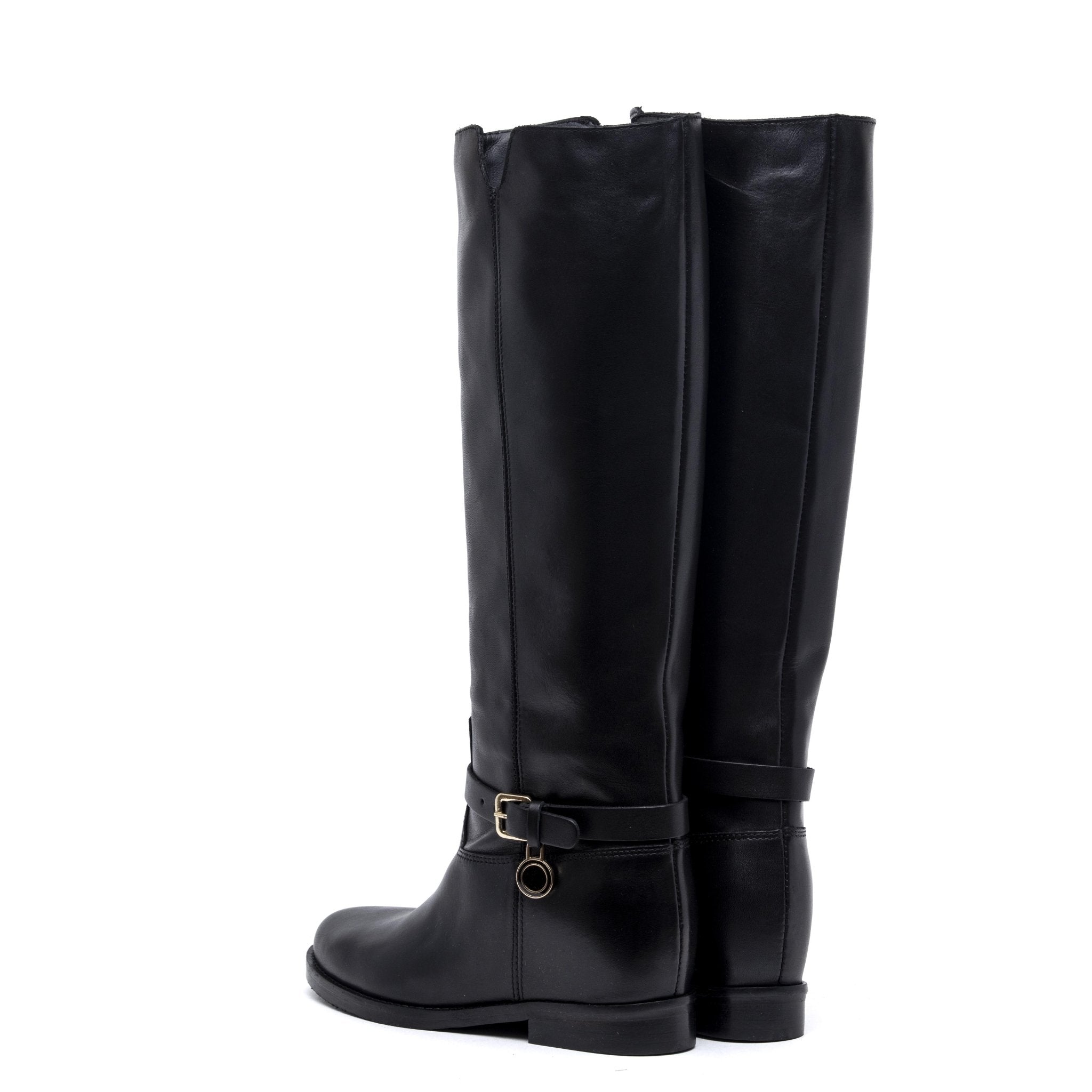 Stivale cavallerizzo in vitello nero con rialzo.