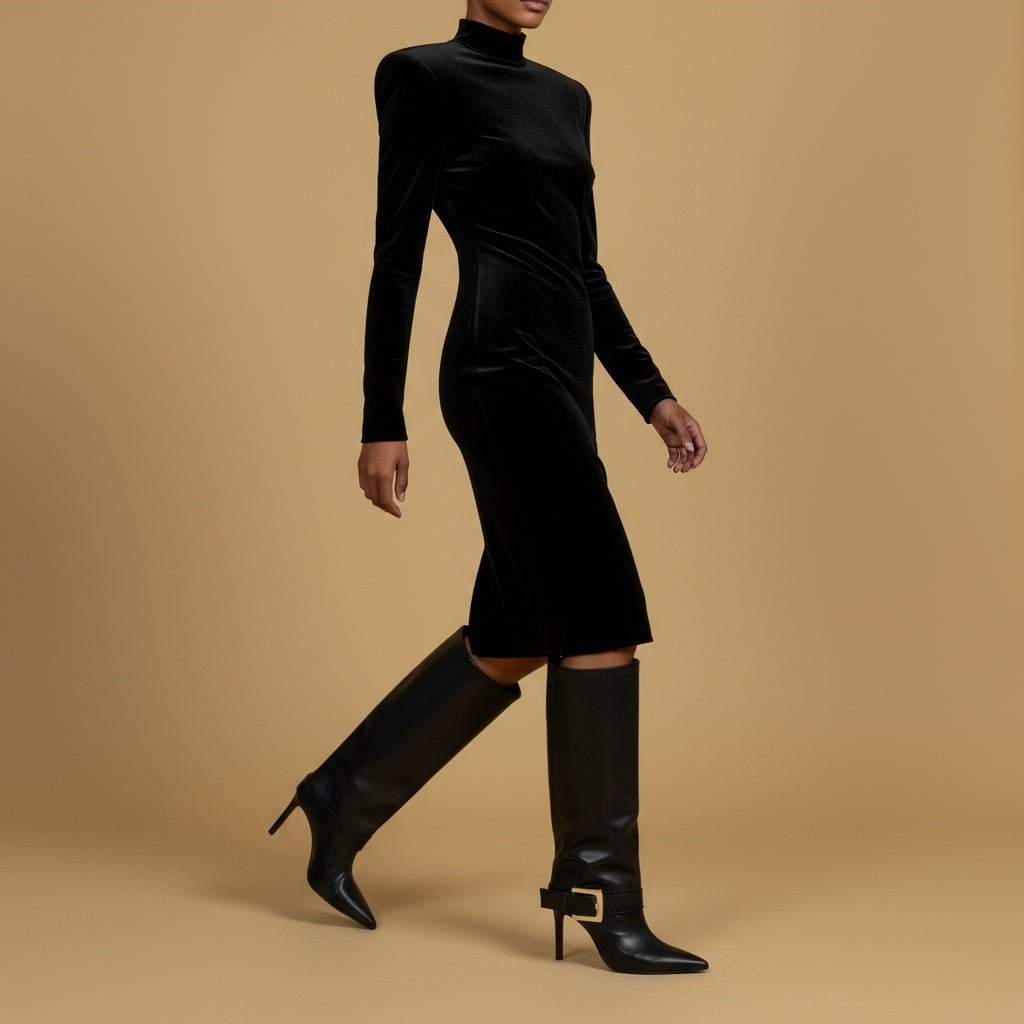 Stivale con gambale a tubo e tacco stiletto.