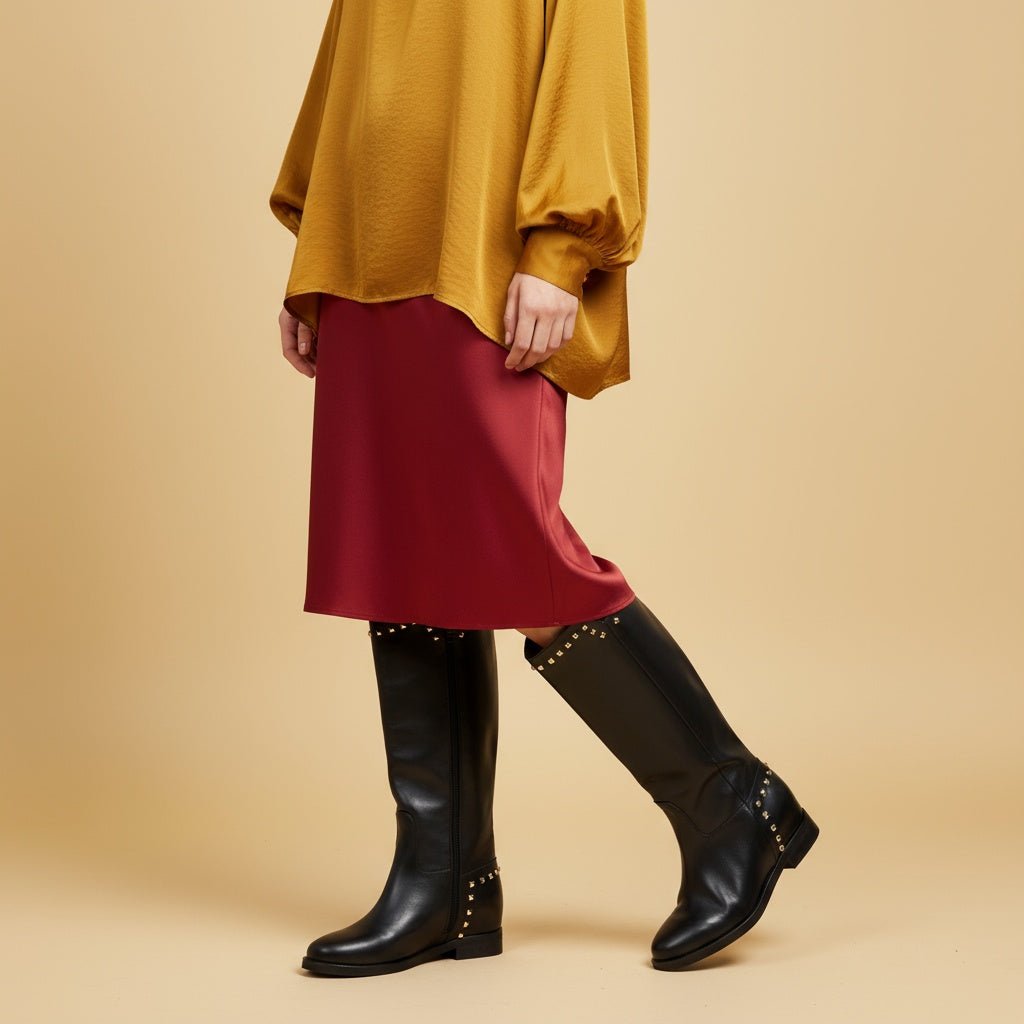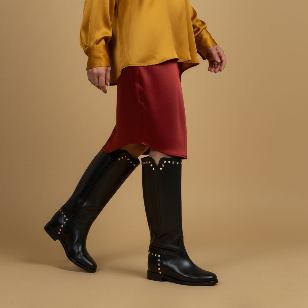 La grinta dello stivale borchiato, in un modello ormai iconico.