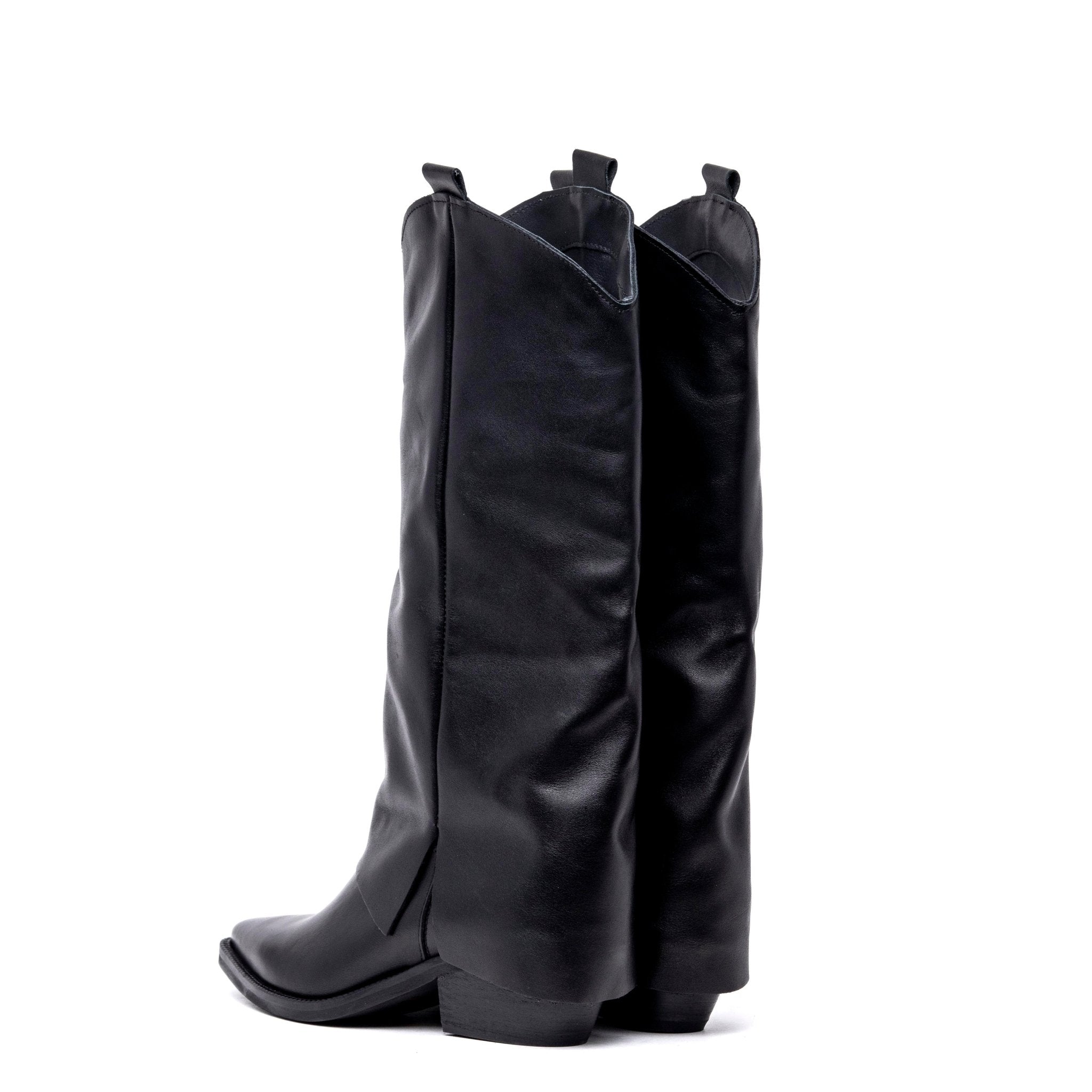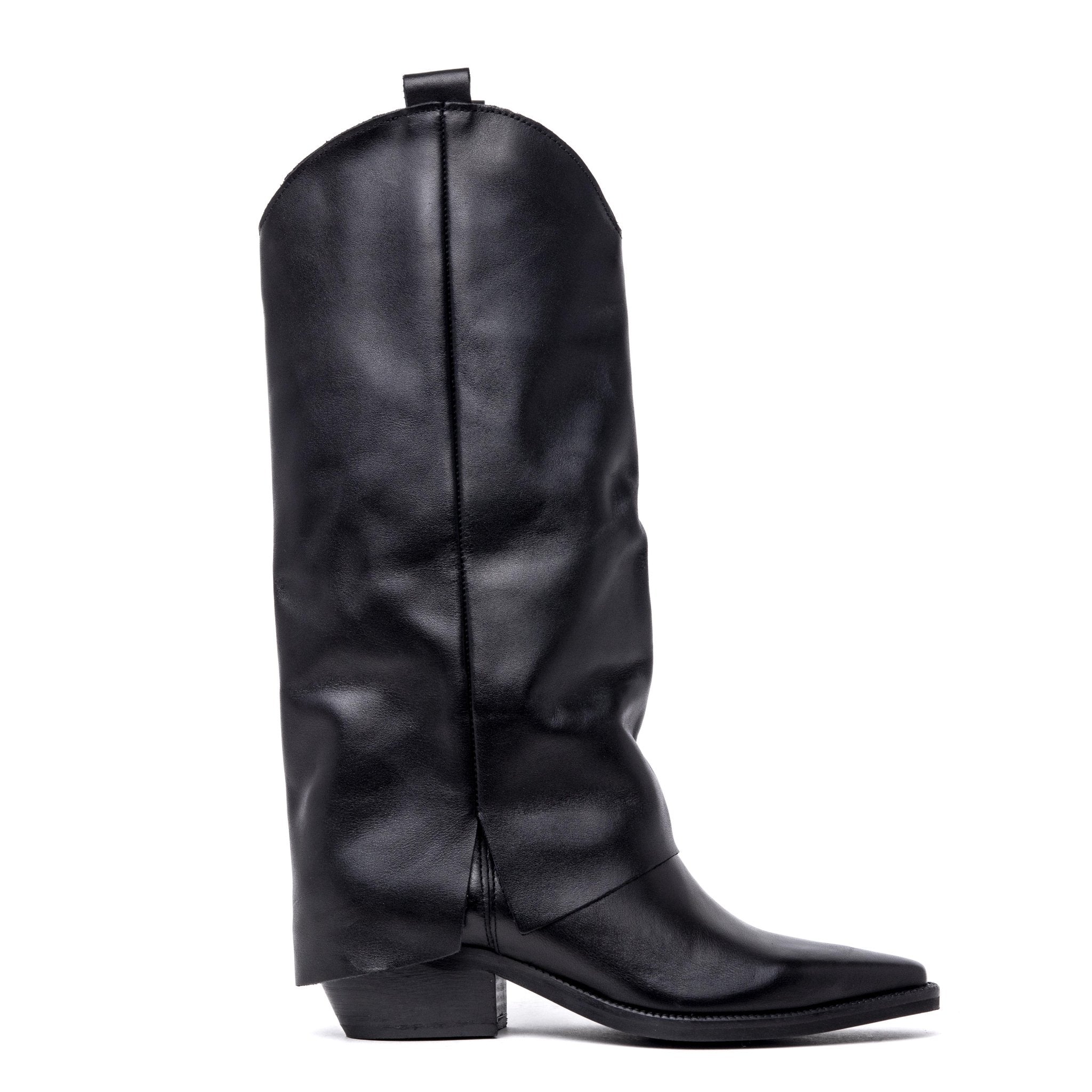 Texano mania. Come previsto, questa stagione il texano sarà uno degli articoli più presentati e richiesti. Questo modello in pelle di vitello ne esalta la silhouette e abbraccia il piede.