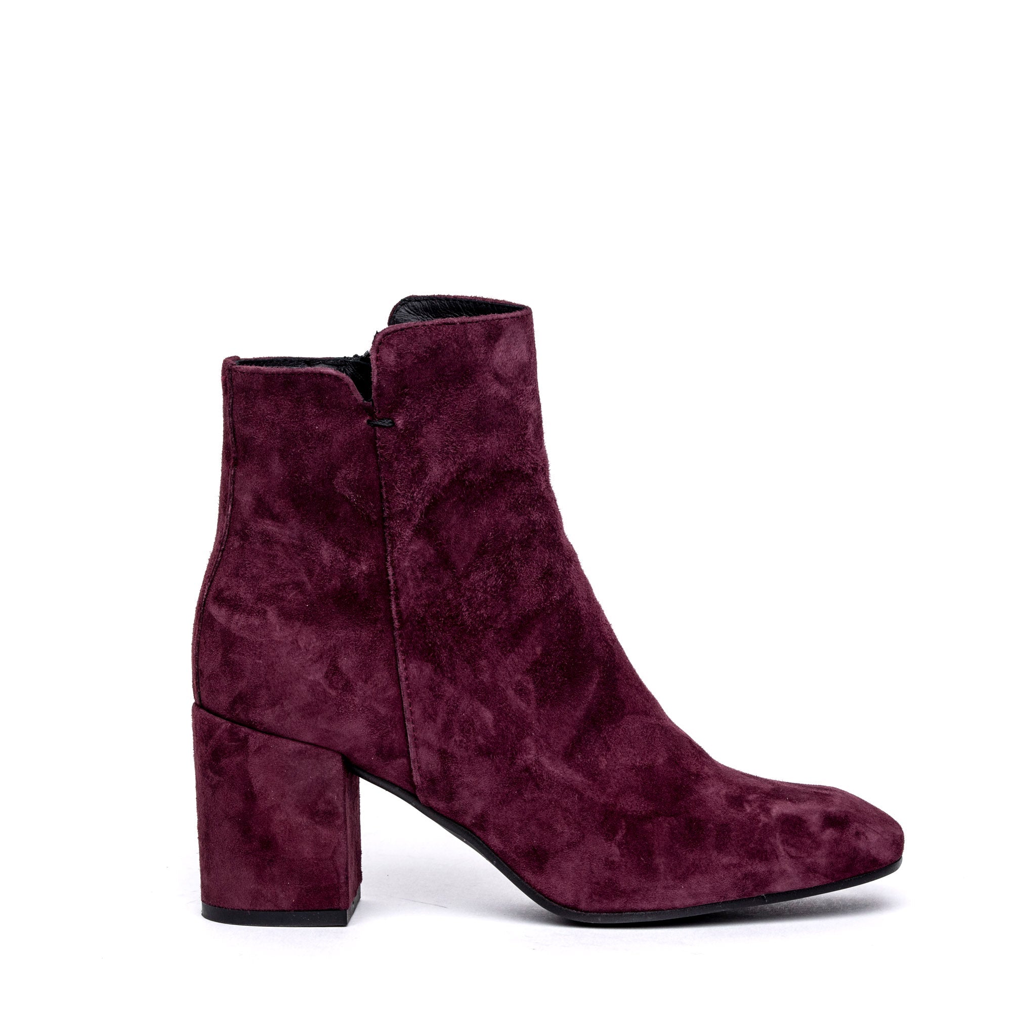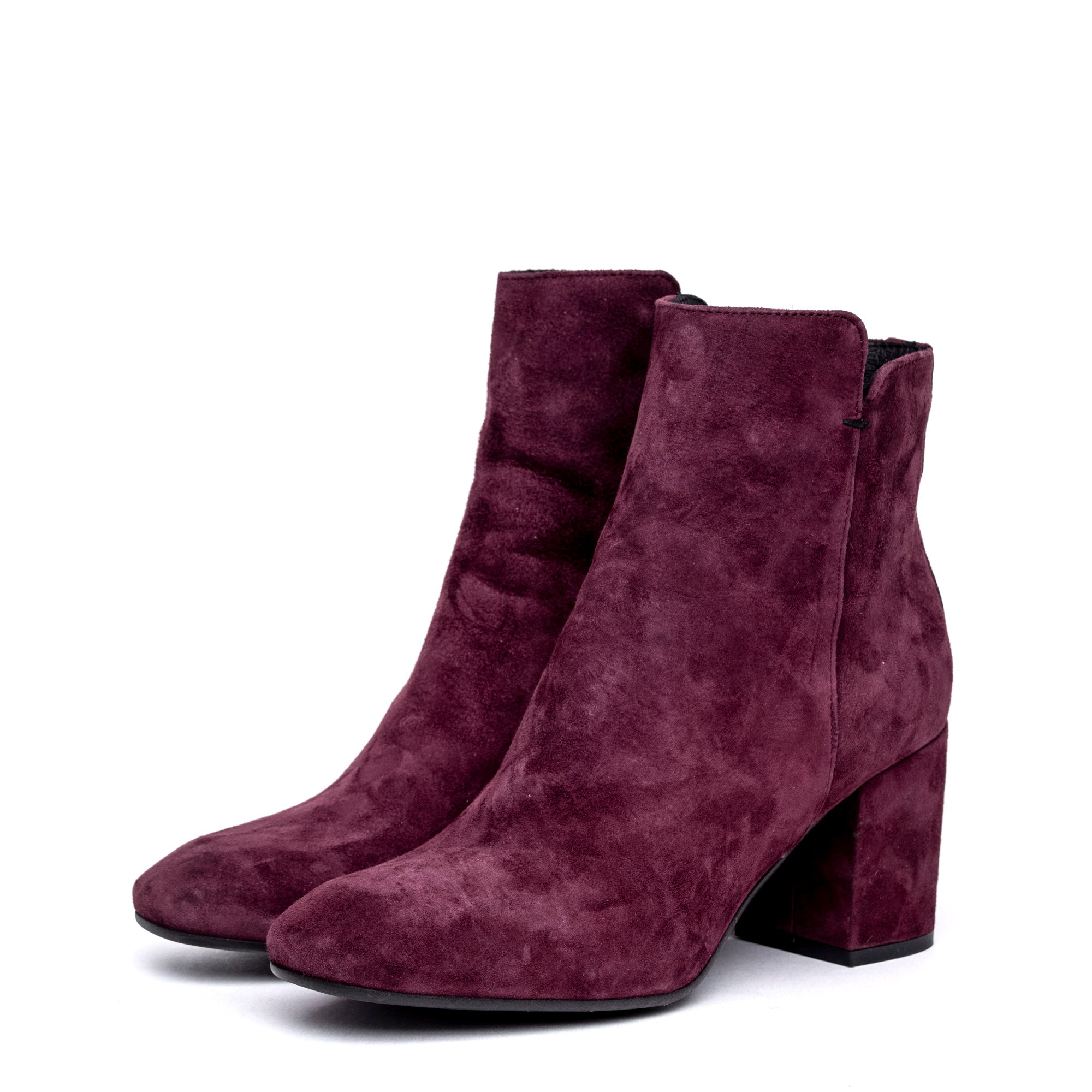 Stivaletto in camoscio bordeaux con tacco