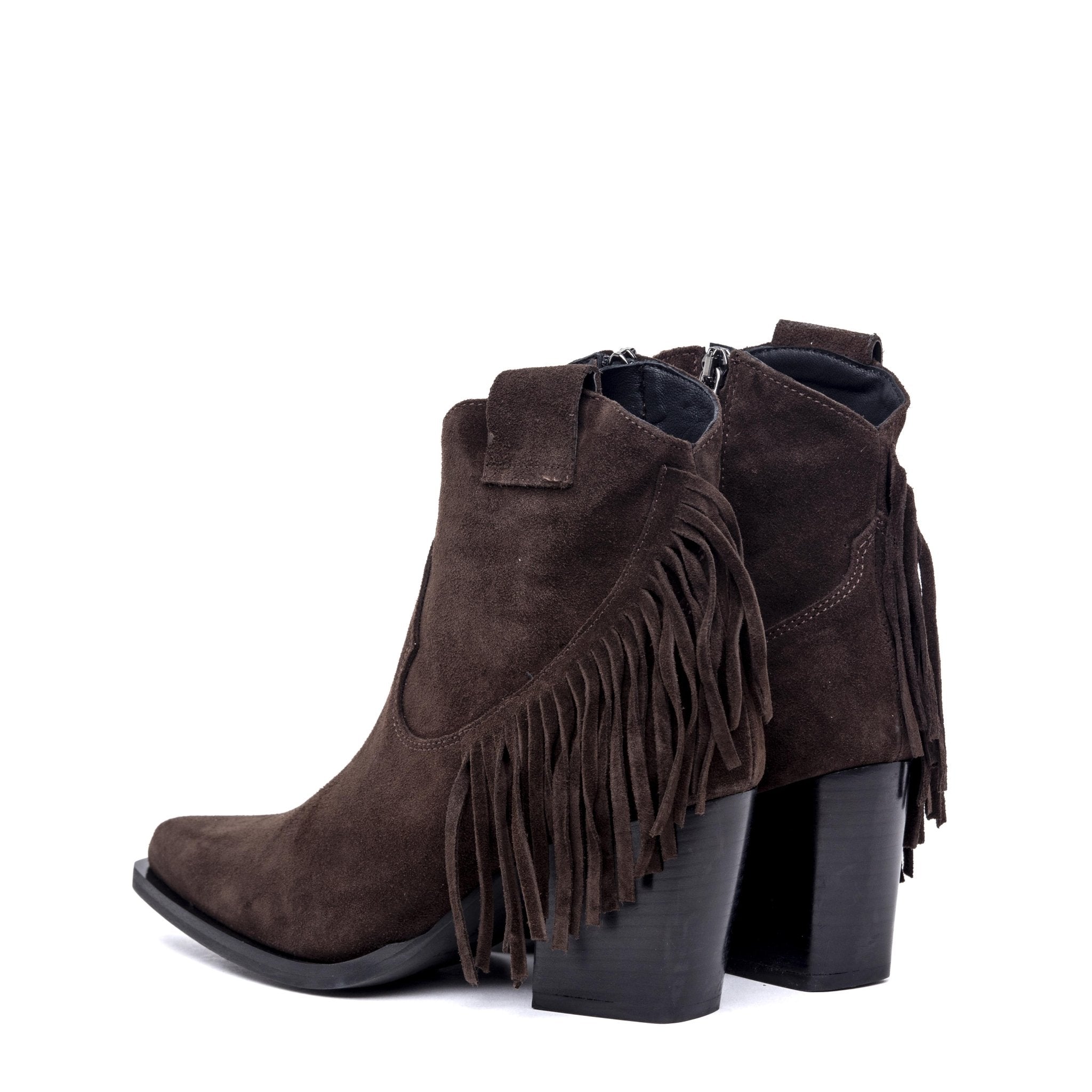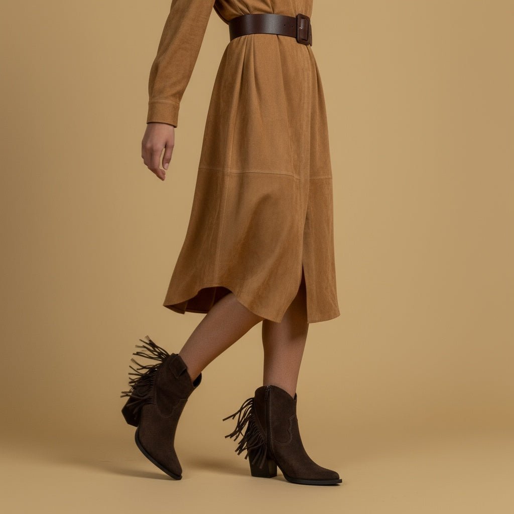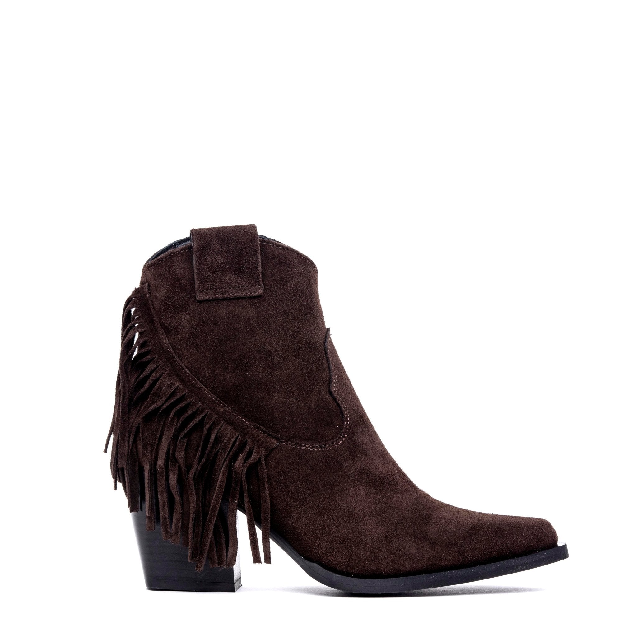 Texano in camoscio cioccolato con frange.