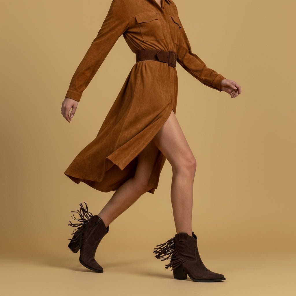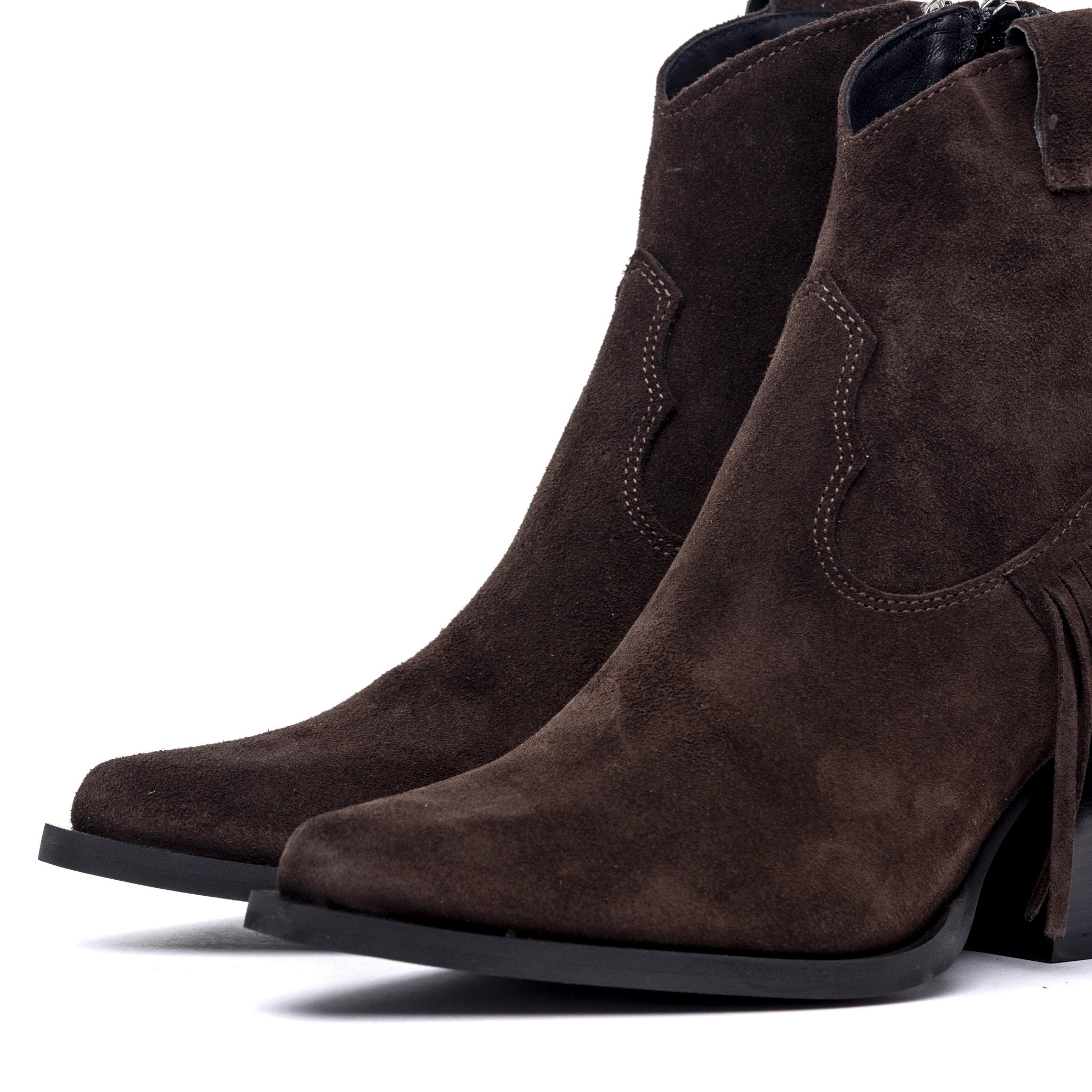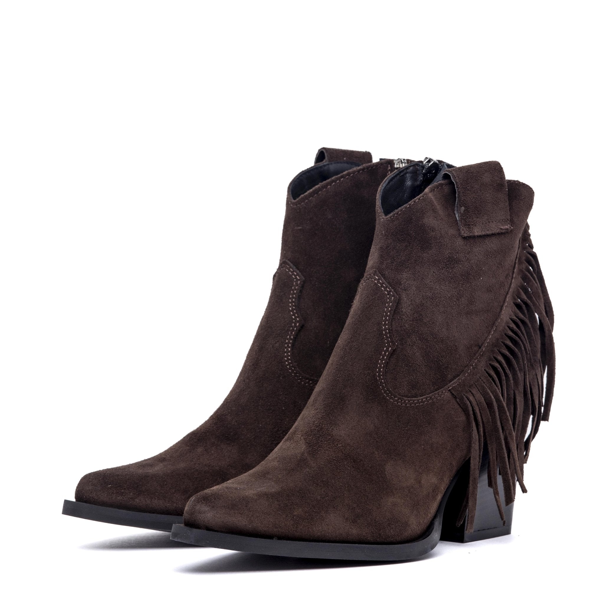 Texano in camoscio cioccolato con frange.